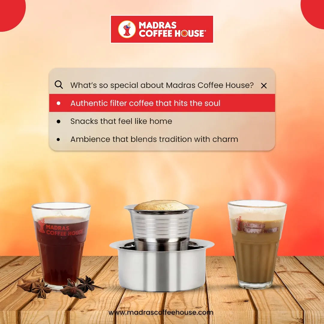 #MadrasCoffeeHouse #FilterCoffee #SearchNoMore #FilterCoffeeLove #TasteThatStays #GoogleKnowsBest #FilterCoffeeNearMe