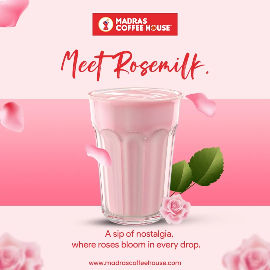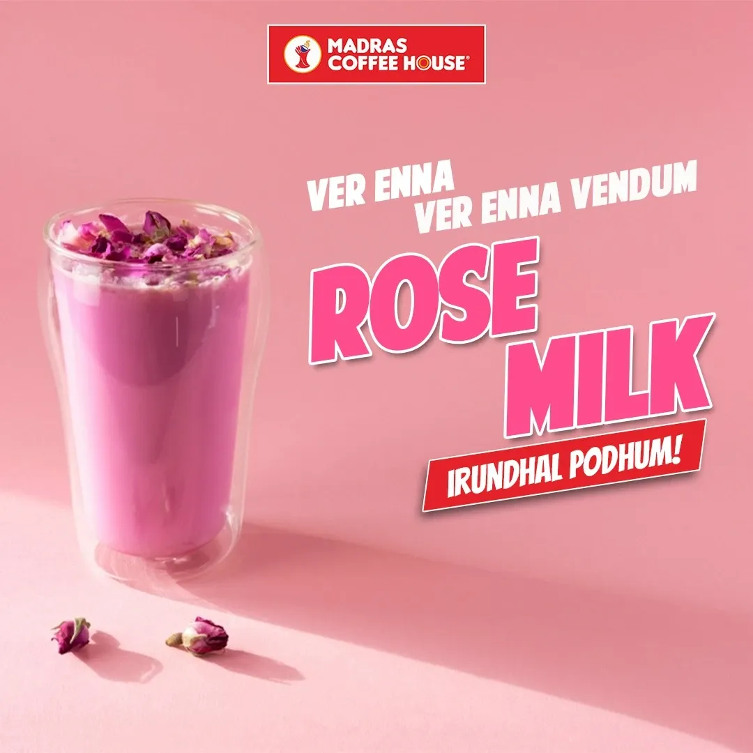 Indulge in the floral elegance of our Rose Milk at Madras Coffee House.
