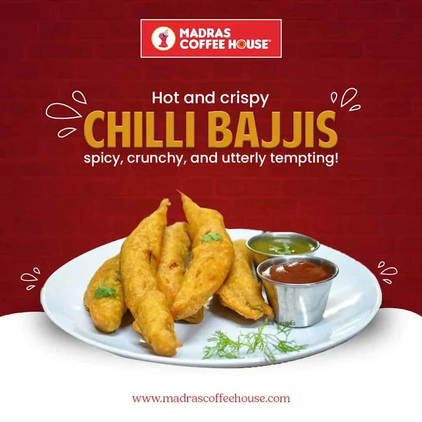 At Madras Coffee House, every bajji is made fresh, crunchy on the outside and soft inside, just the way you love it. Pair it with our signature South Indian filter coffee or a cup of masala chai, and you’ve got yourself the ultimate comfort combo.