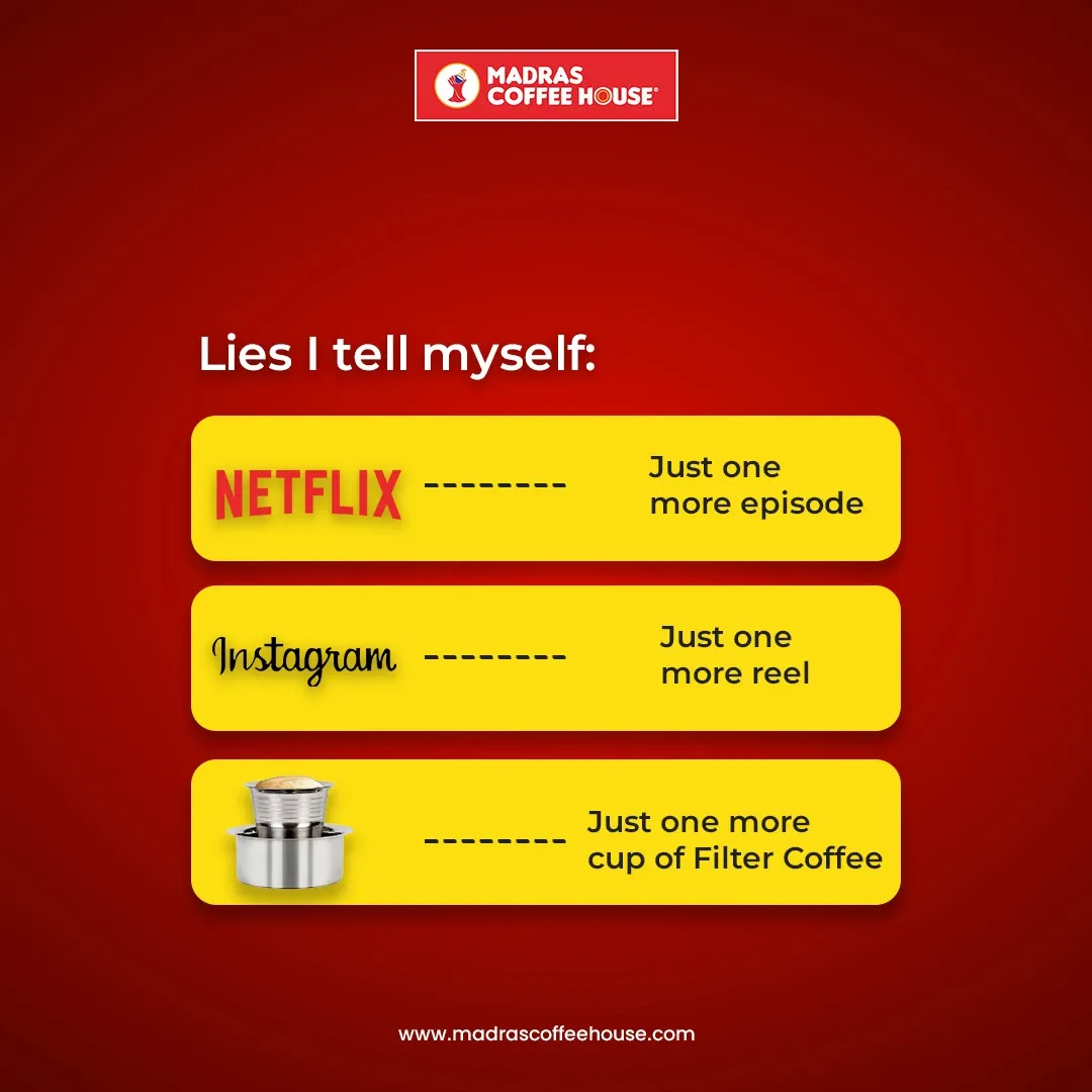 #MadrasCoffeeHouse #FilterCoffeeLove #CoffeeHumor #CaffeineLife #JustOneMore #CoffeeAddict #DailyDose #CoffeeTime #CoffeeShopNearBesant Nagar