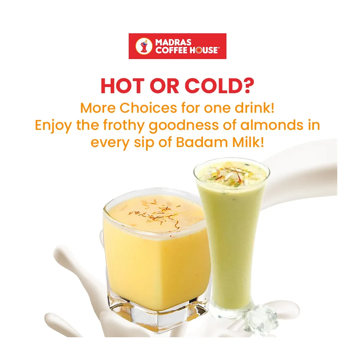 Discover the ultimate comfort drink — Badam Milk at Madras Coffee House.